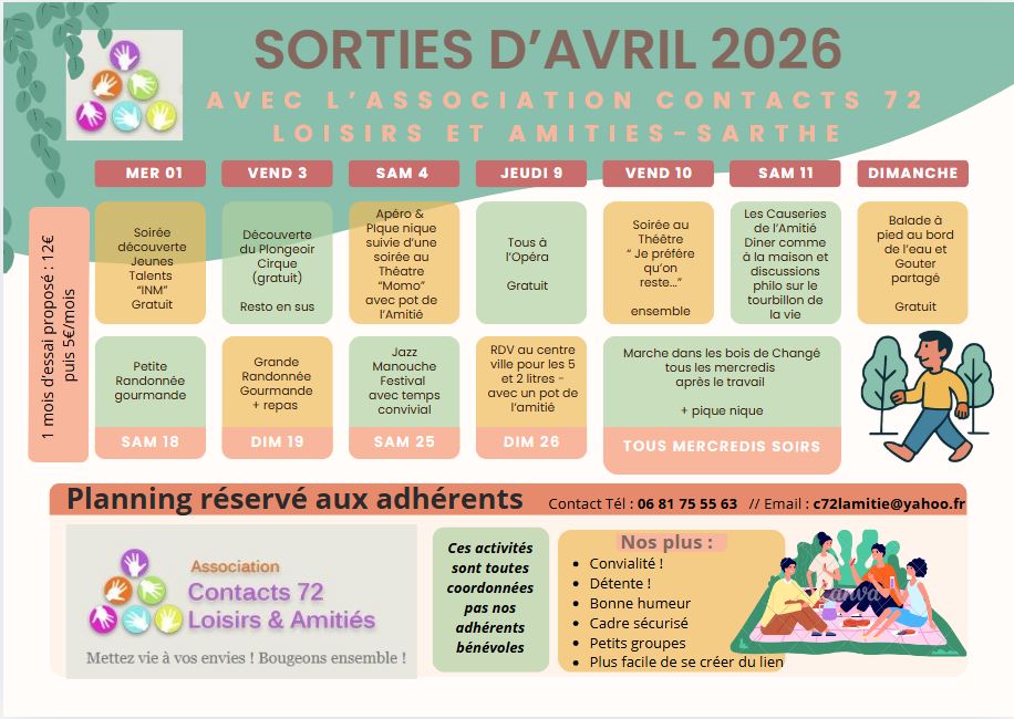 Bienvenue chez Contacts72 Loisirs & Amitiés !
